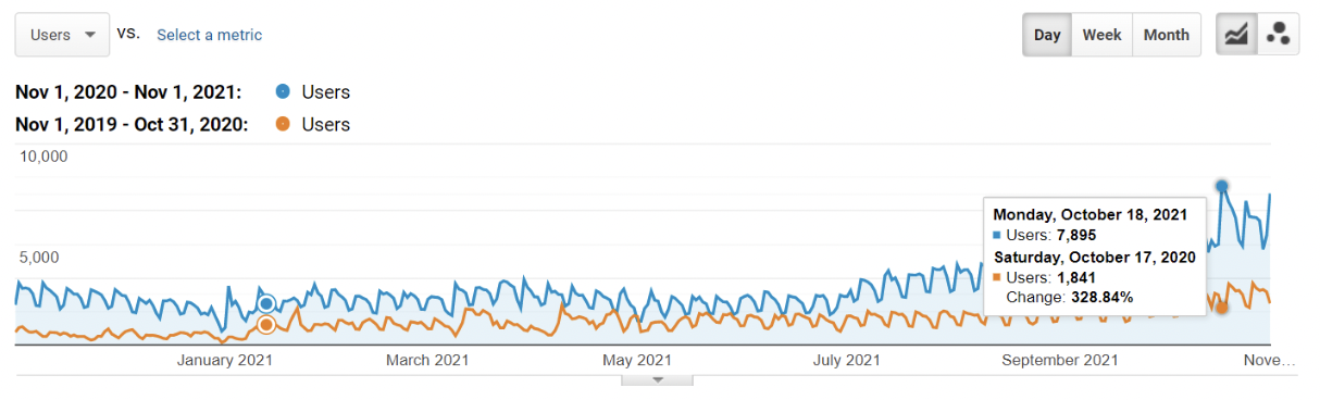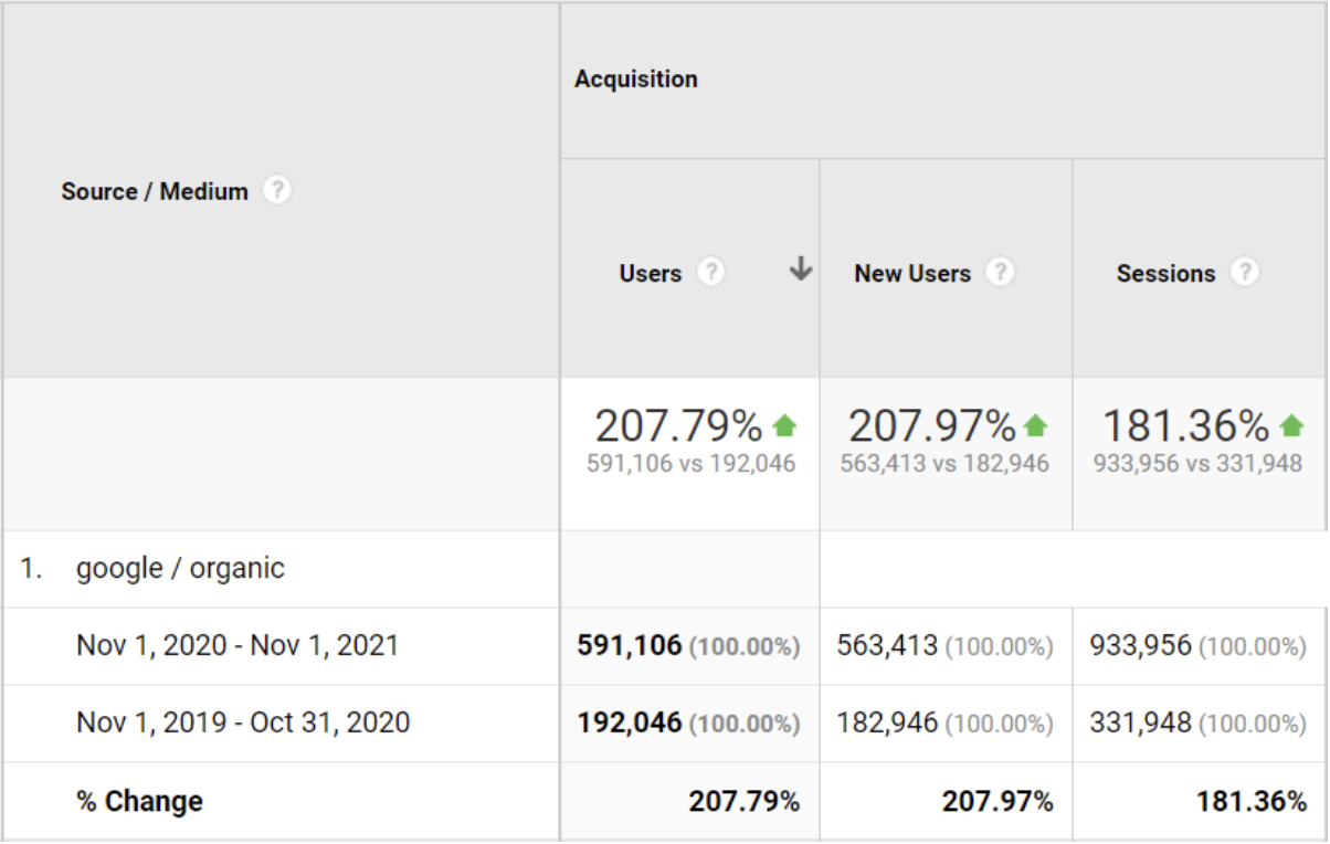 ✔️ Organic traffic for the website grew by 207%. For example, the daily traffic of the site has increased from 1500-2000 per day to 5000-7000 users per day.